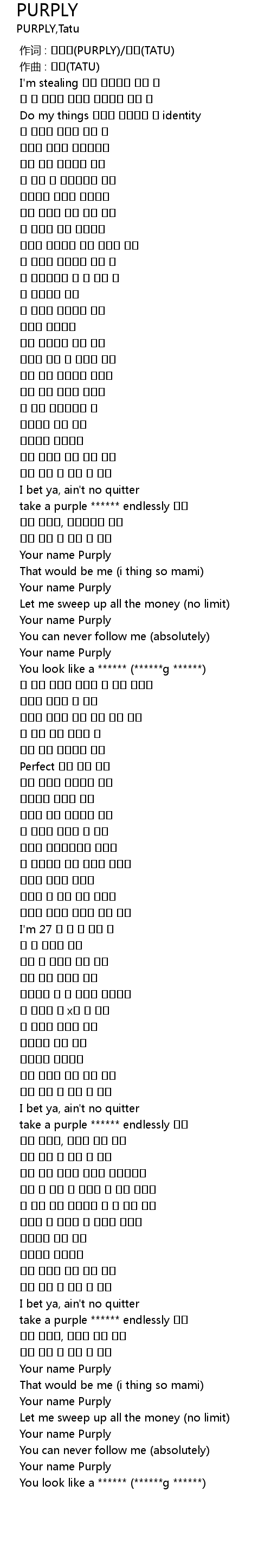 | [00:00.000] | zuò cí : PURPLY TATU |