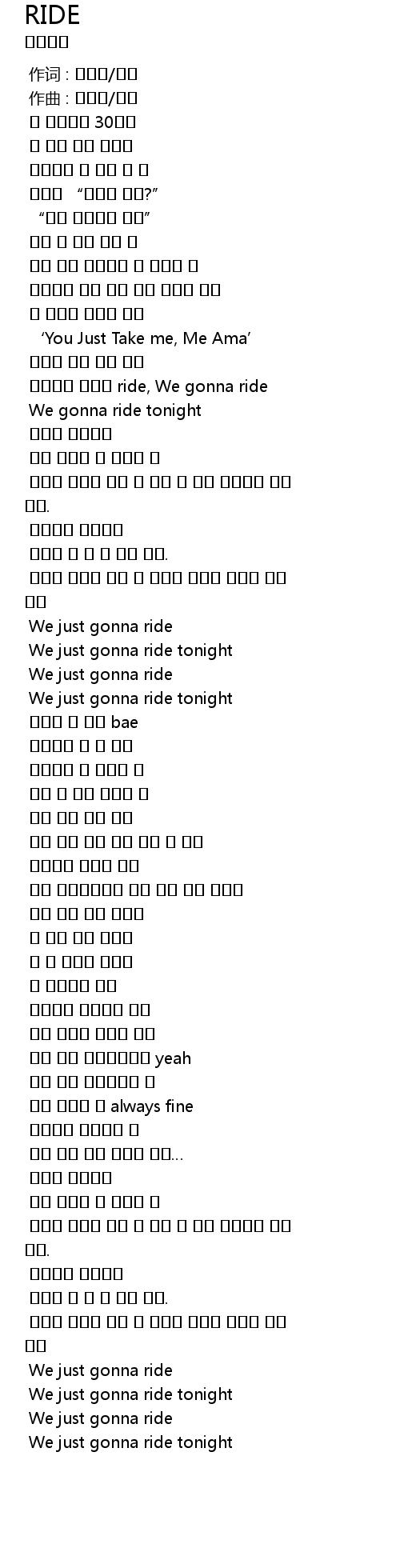 | [01:06.133] | 있고싶어 이렇게 ride, We gonna ride |