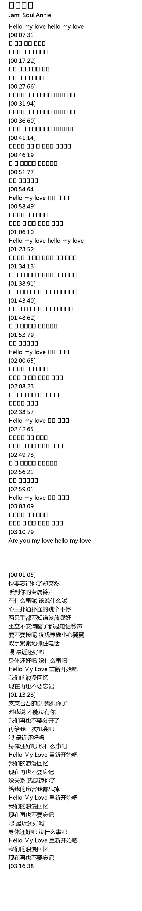 | [00:01.05] | Hello my love hello my love |