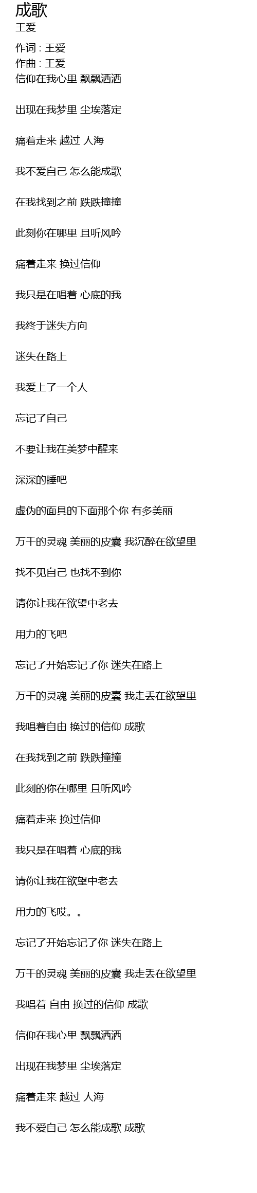 | 我不爱自己 怎么能成歌 | |