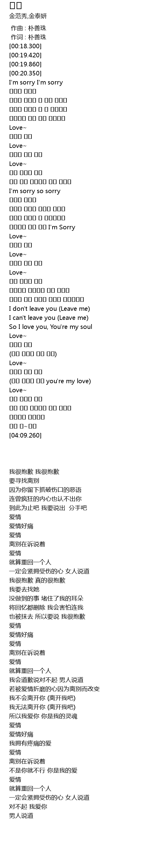 | [00:01.00] | 作词 : 朴善珠 |
