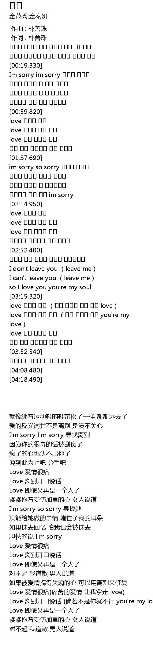 | [00:24.000] | Im sorry im sorry 이별을 찾는다 |
