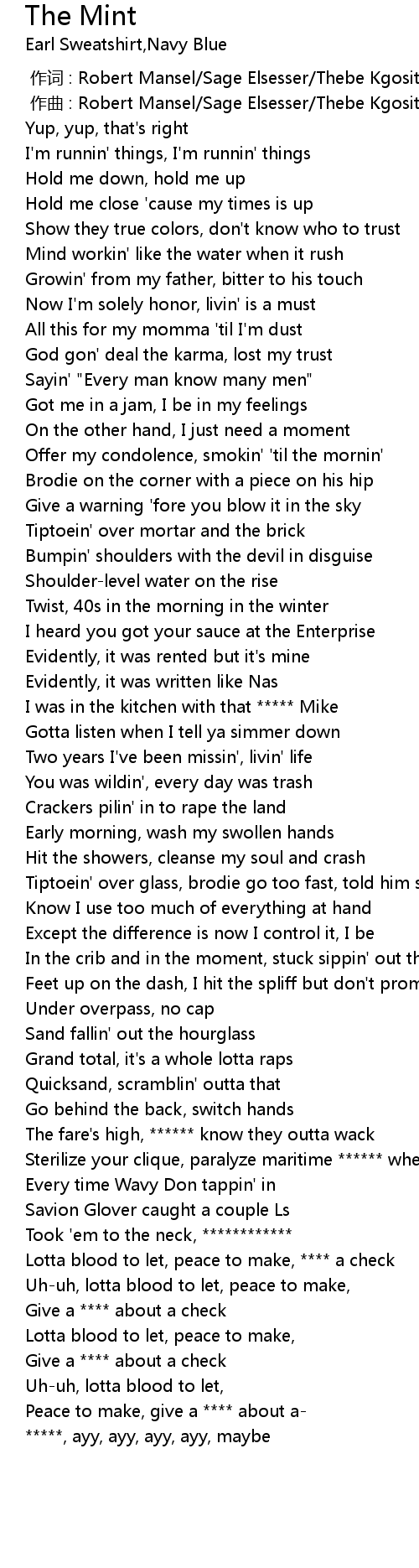 | [02:28.36] | *****, ayy, ayy, ayy, ayy, maybe |