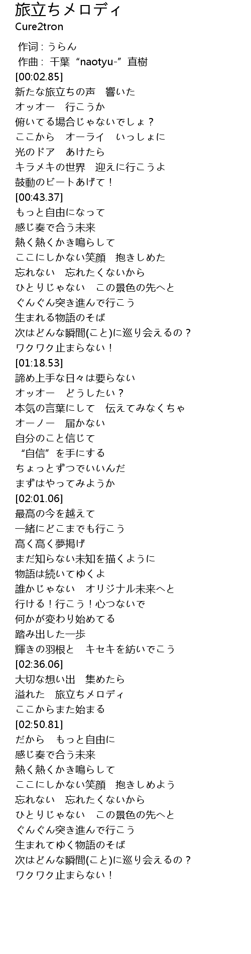| [02:42.30] | 溢れた 旅立ちメロディ |