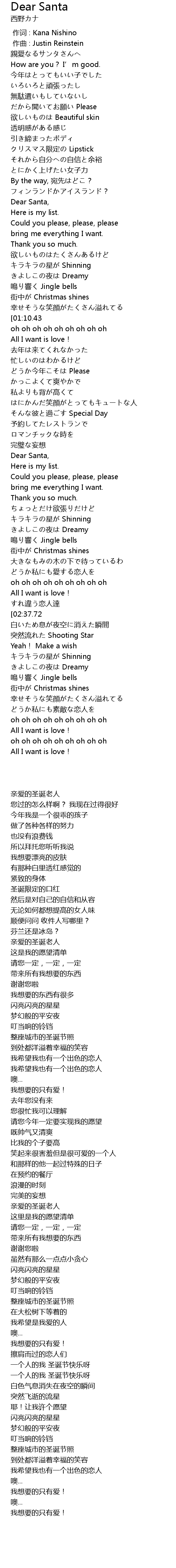 | [00:10.70] | 亲爱的圣诞老人 |