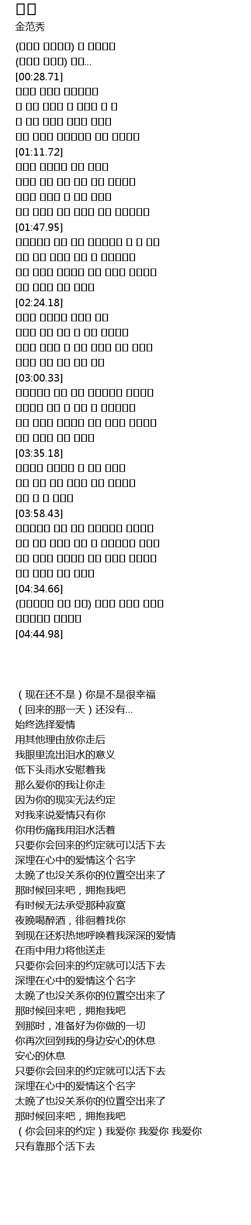 | [04:35.93] | (돌아온다는 너의 약속) 사랑해 사랑해 사랑해 |