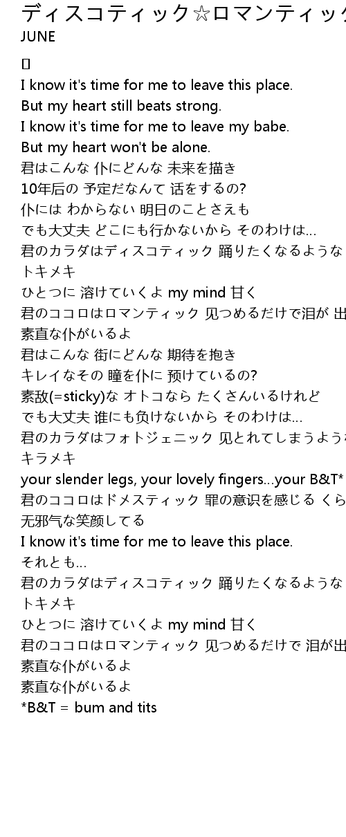 | 君のカラダはディスコティック 踊りたくなるような トキメキ | |