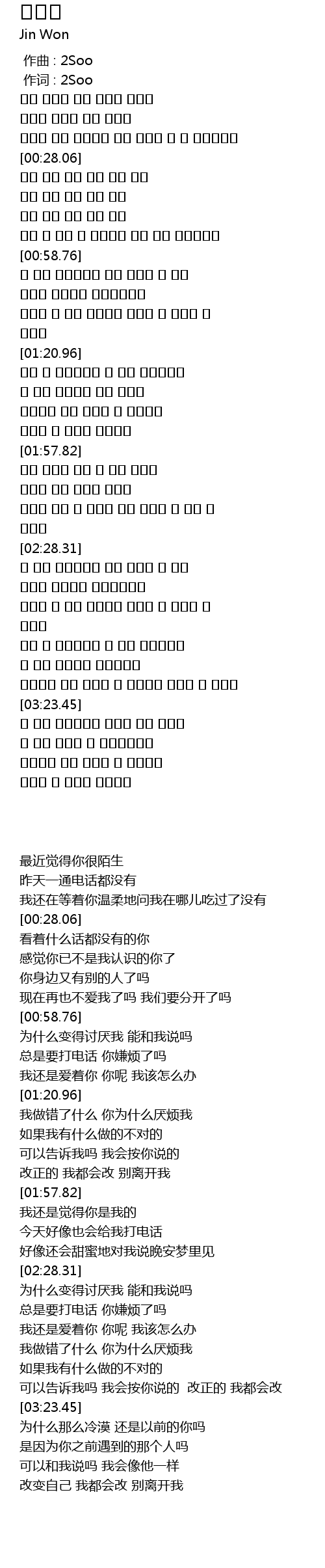 | [02:29.31] | 为什么变得讨厌我 能和我说吗 |