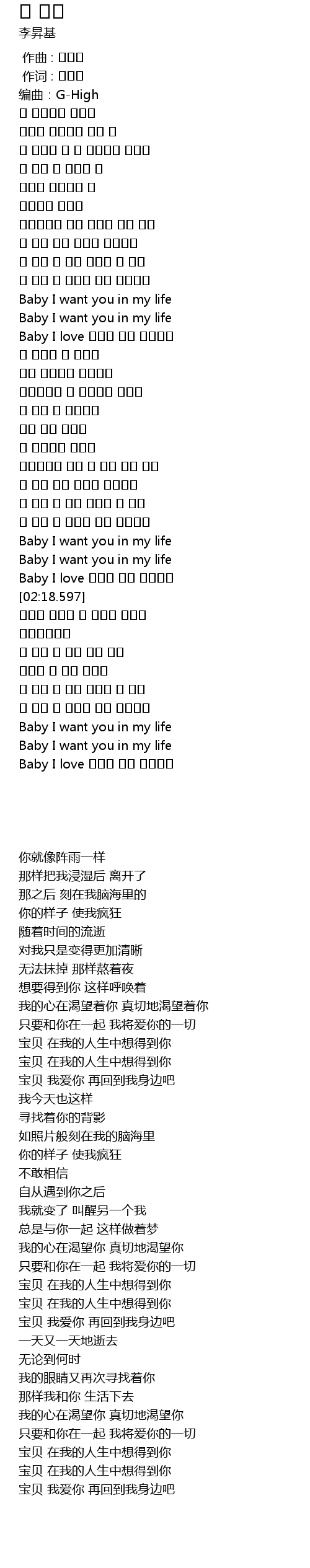 | [01:00.659] | 宝贝 在我的人生中想得到你 |