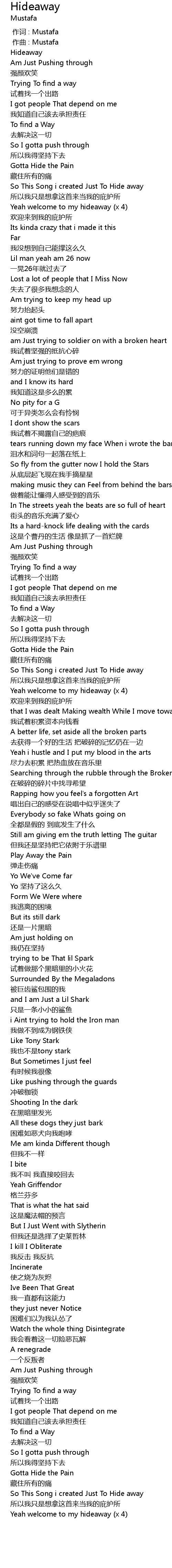 | [01:26.628] | Yeah welcome to my hideaway (x 4) |