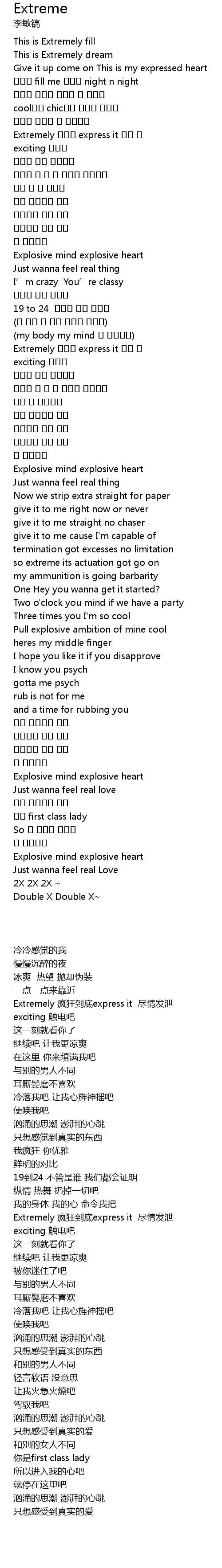 | [00:31.400] | Extremely 疯狂到底express it 尽情发泄 |