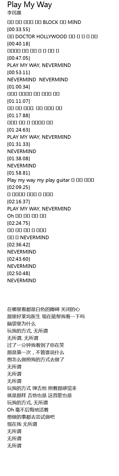 | [02:18.56] | PLAY MY WAY, NEVERMIND |
