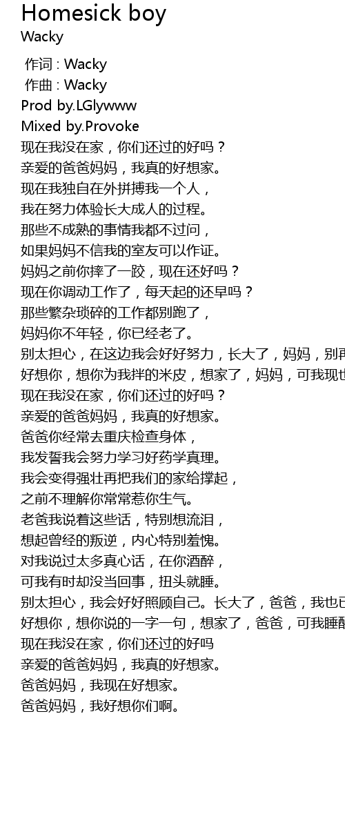 | [01:21.74] | qīn ài de bà bà mā mā, wǒ zhēn de hǎo xiǎng jiā. |