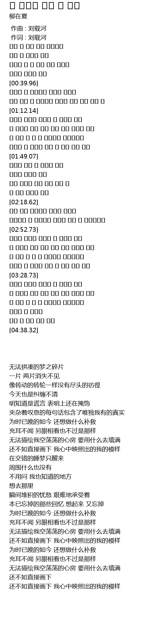 | [02:53.80] | 이제와 뒤늦게 무엇을 더 보태려 하나 |