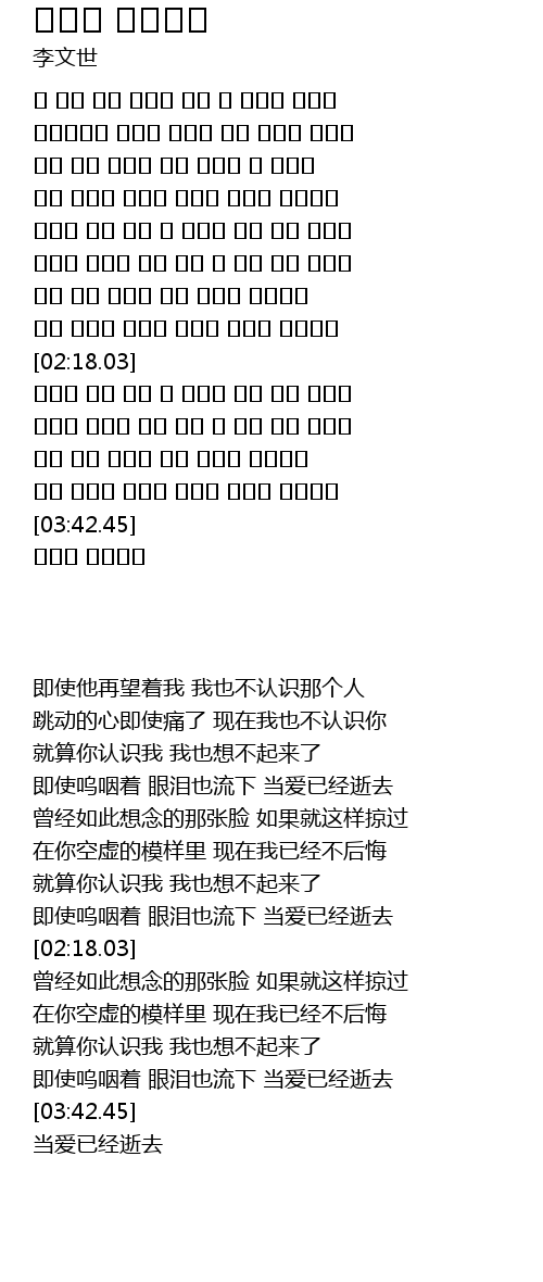 | [03:14.63] | 그대 나를 알아도 나는 기억을 못합니다 |