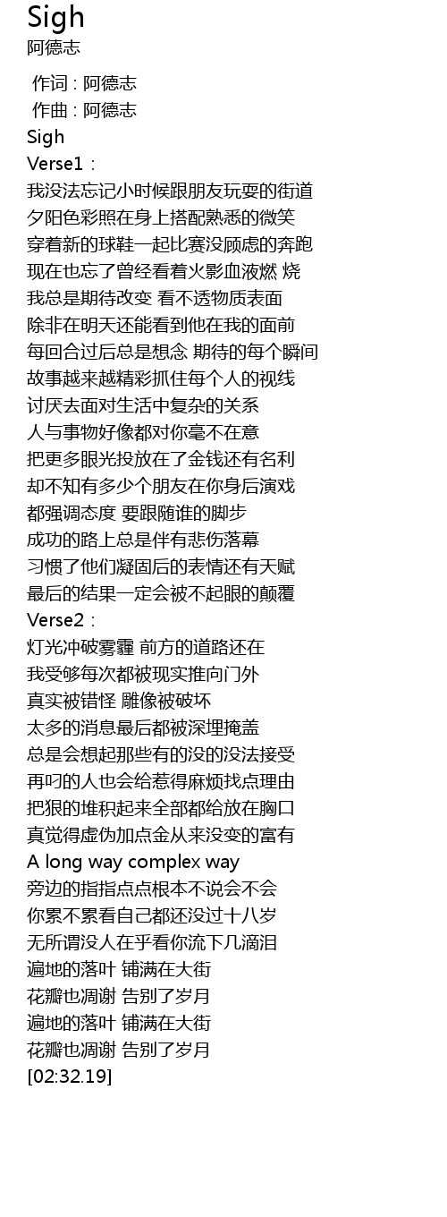 | [02:22.32] | 花瓣也凋谢 告别了岁月 |