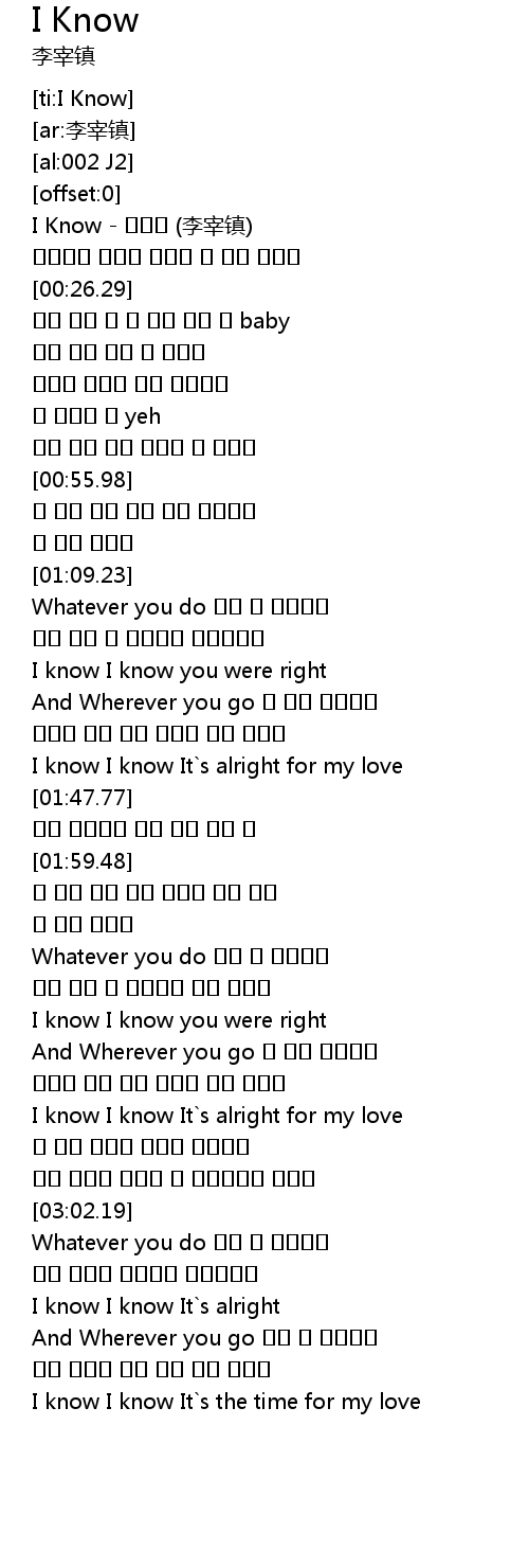 | [00:00.00] | I Know - 이재진 (李宰镇) |