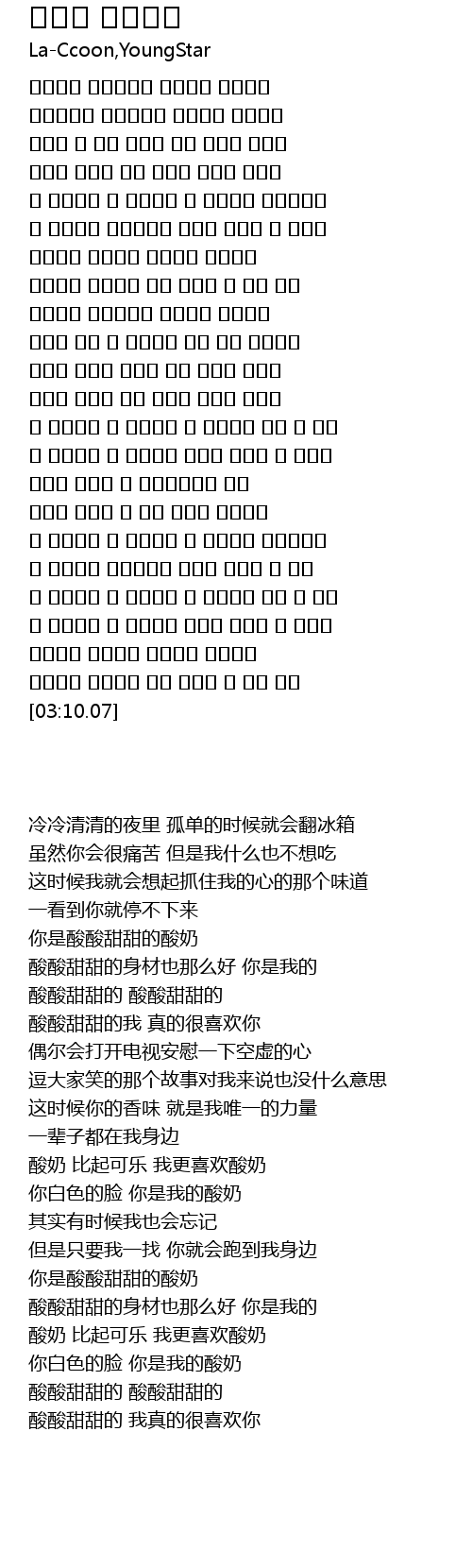 | [03:01.93] | 새콤달콤 요구르트 니가 정말로 난 좋아 좋아 |