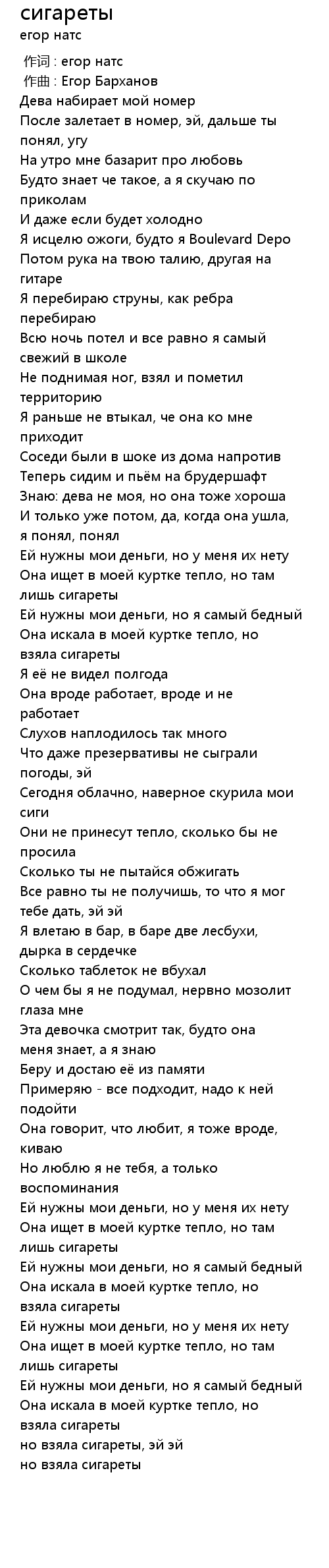 сигареты 歌词