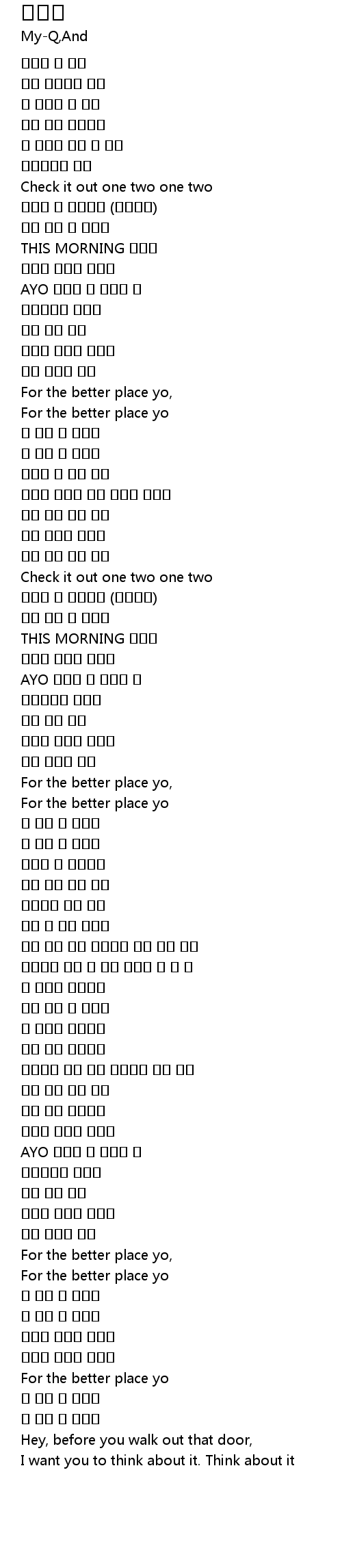 | [00:54.32] | For the better place yo, |