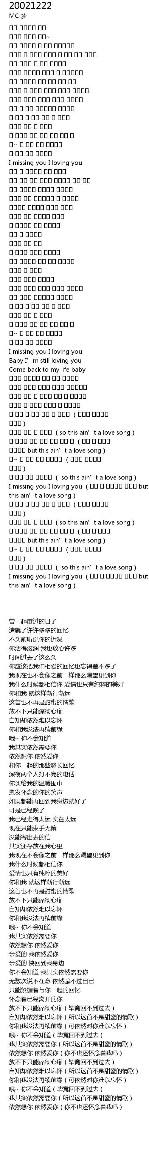 | [03:34.82] | I missing you I loving you but this ain' t a love song |