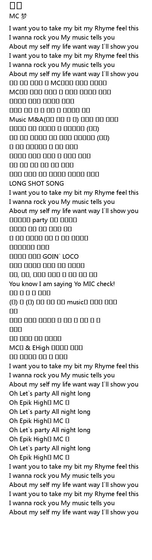 | [00:37.76] | 신사 숙녀 여러분 나 MC몽이야 가문에 영광이야 |