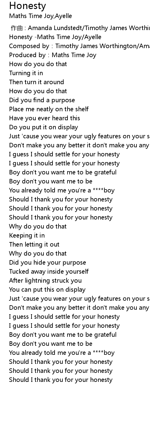| [00:00.526] | Honesty Maths Time Joy Ayelle |
