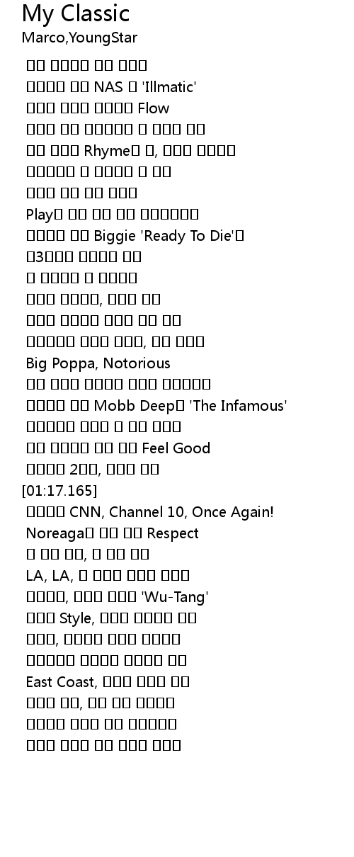 | [01:21.179] | Noreaga는 내가 가장 Respect |