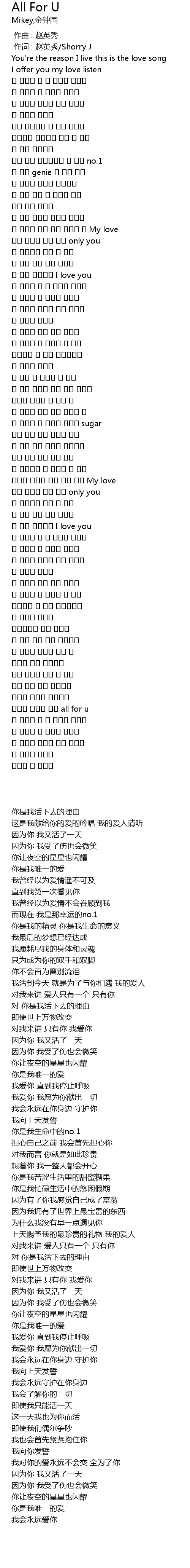 | [00:01.00] | 作词 : 赵英秀/Shorry J |