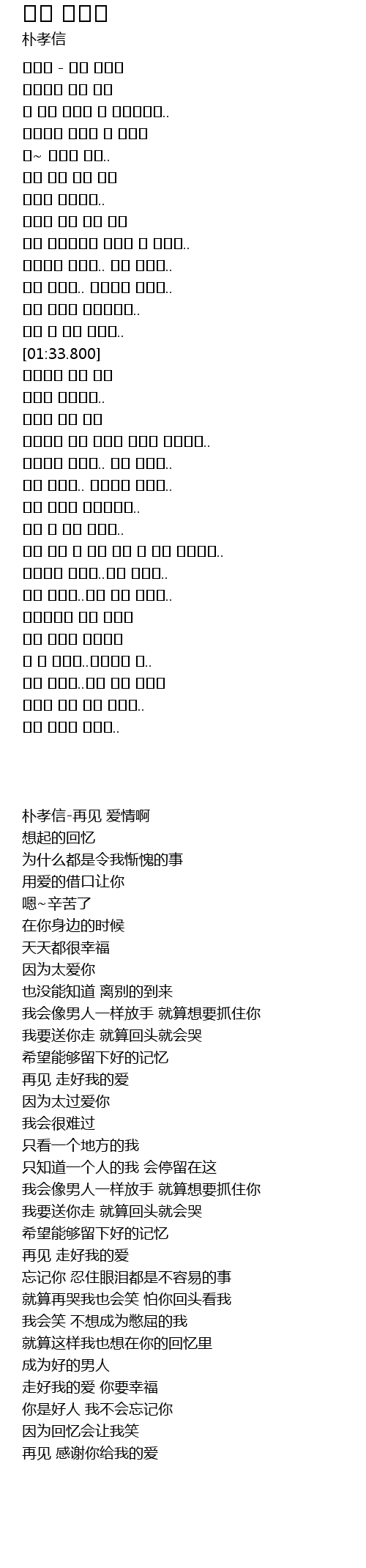 | [00:01.140] | 朴孝信-再见 爱情啊 |