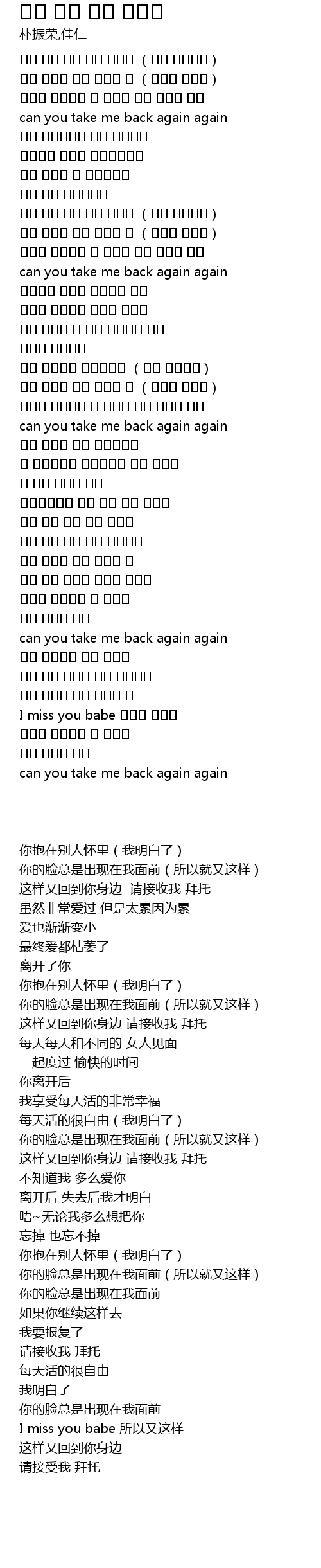 | [00:13.640] | 这样又回到你身边 请接收我 拜托 |