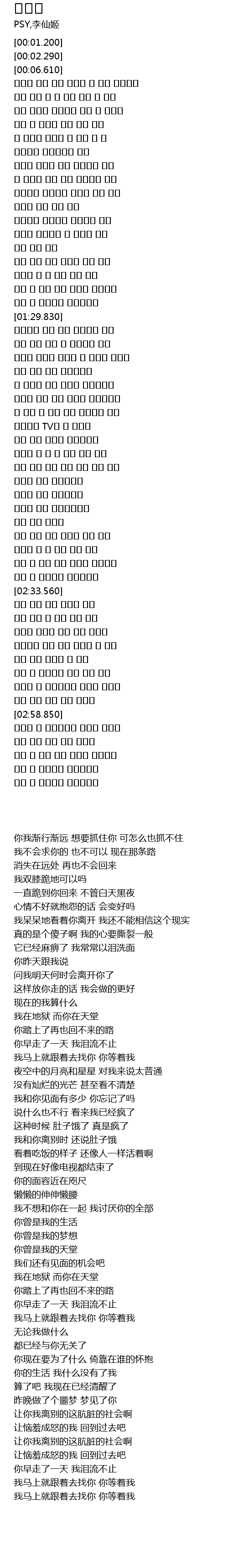 真的是个傻子啊 我的心要撕裂一般 |