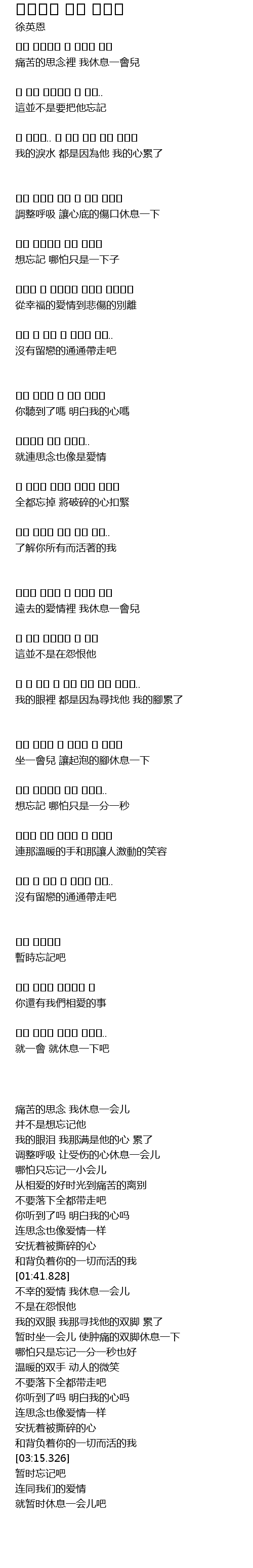 | [00:20.493] | 痛苦的思念 我休息一会儿 |