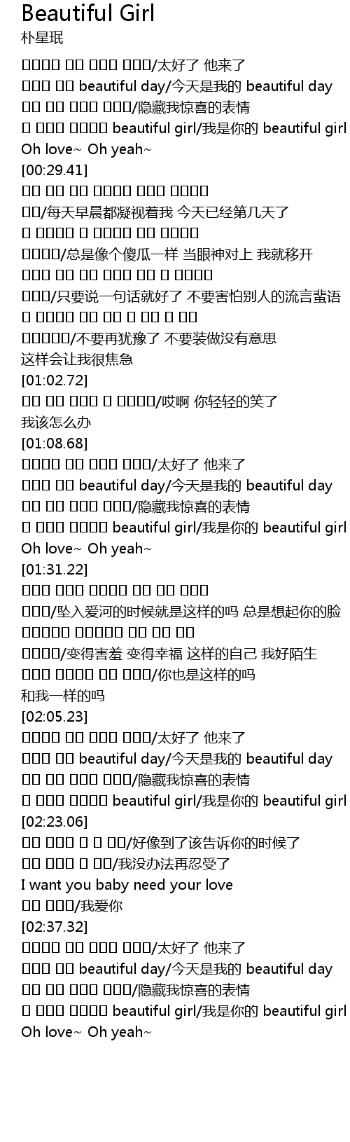| [01:23.79] | 난 그대의 뷰뷰뷰뷰 beautiful girl/我是你的 beautiful girl |