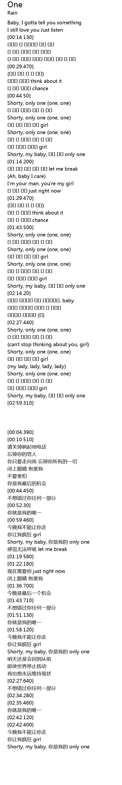 | [02:53.890] | Shorty, my baby, 你是我的 only one |
