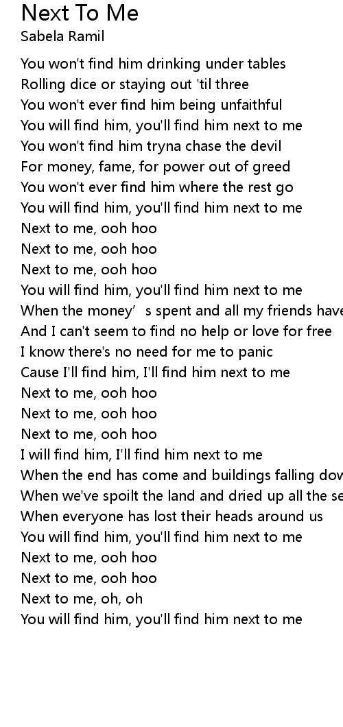 | [01:29.75] | Next to me, ooh hoo |