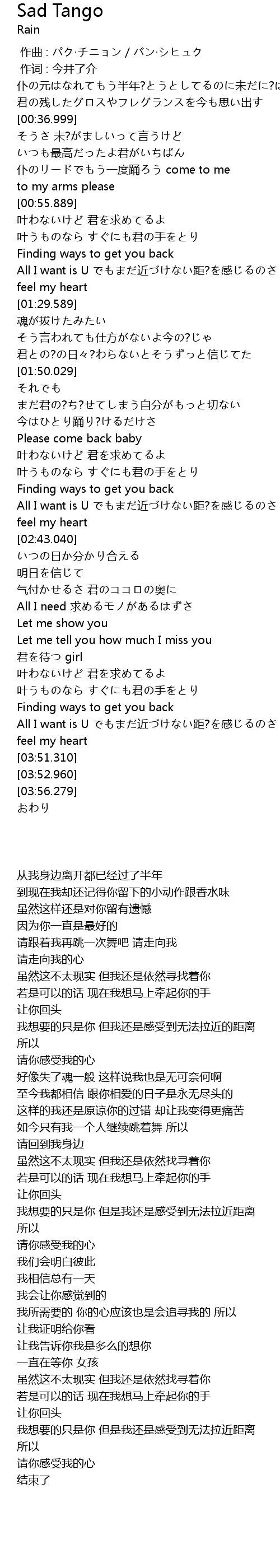 | [02:05.189] | Please come back baby |