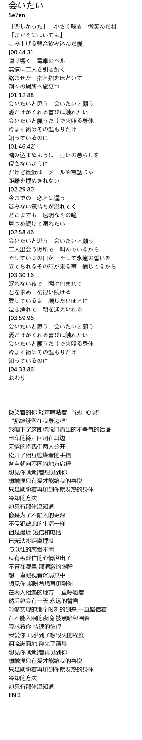 | [01:13.33] | 会いたいと思う 会いたいと願う |