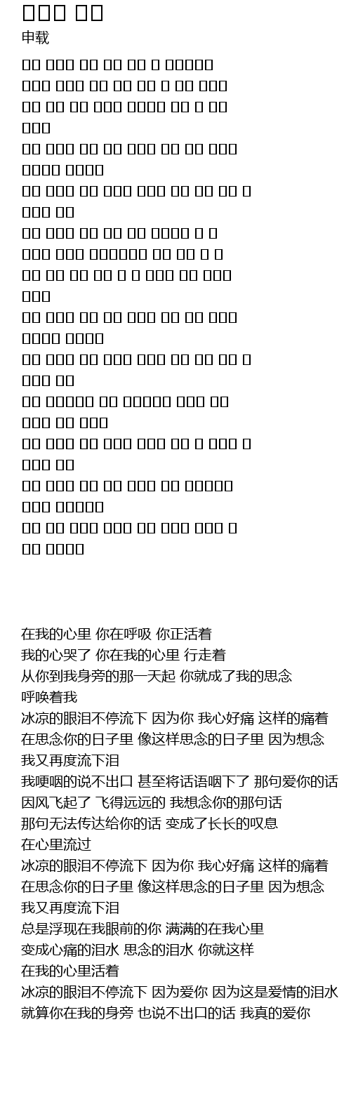 | [03:13.890] | 자꾸 눈물이 난다 시린 눈물이 난다 사랑하니까 사랑한 눈물이니까 |