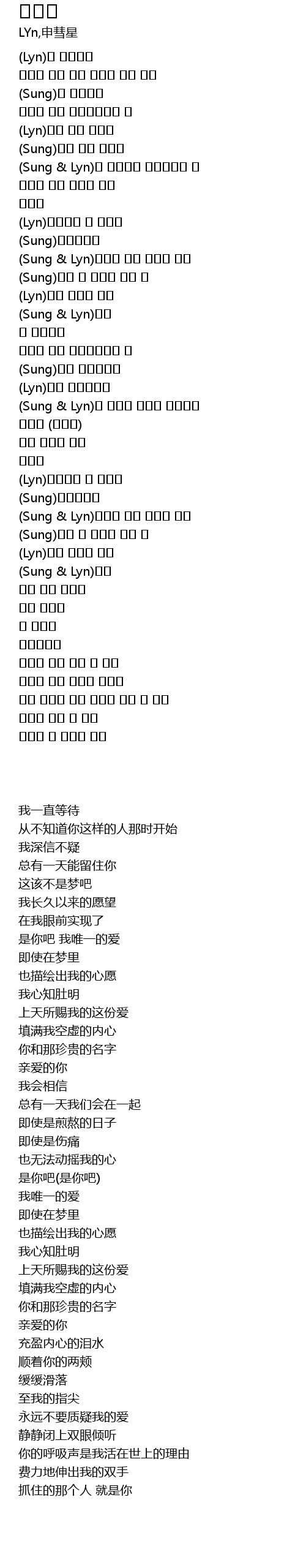 | [01:17.920] | (Sung & Lyn)하늘이 내게 보내준 사랑 |