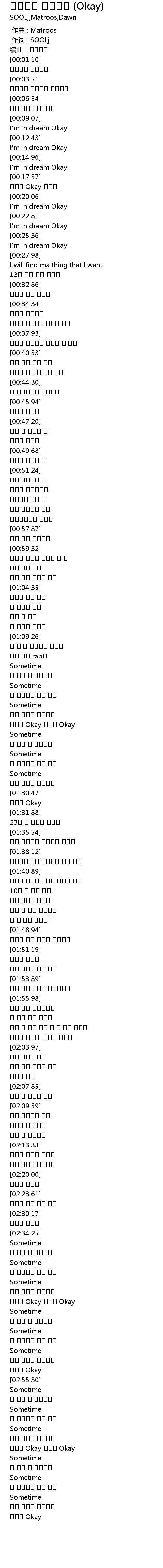 | [01:20.59] | 오케이 Okay 오케이 Okay |