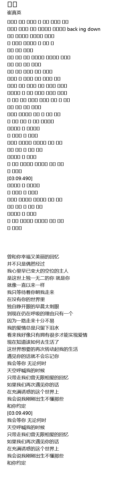 | [00:34.670] | 曾和你幸福又美丽的回忆 |