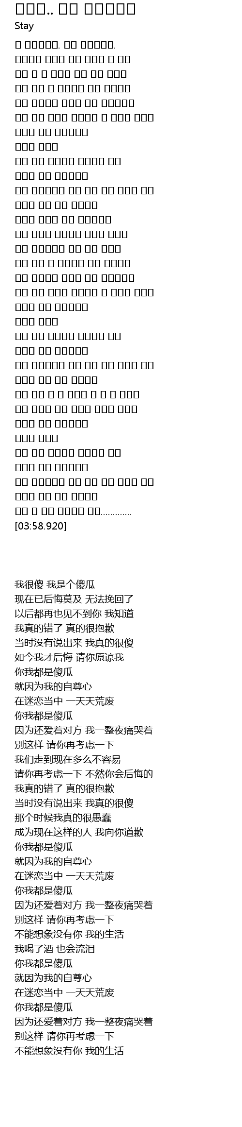 | [03:30.890] | 당신은 나는 바보입니다 |