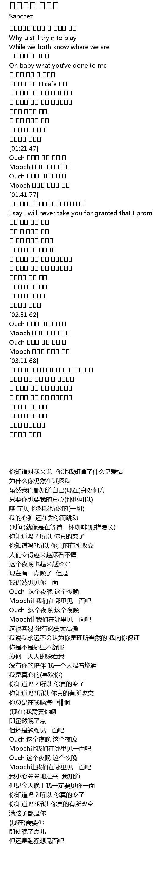 | [03:01.36] | Ouch 오오오 늘밤 늘밤 만 |