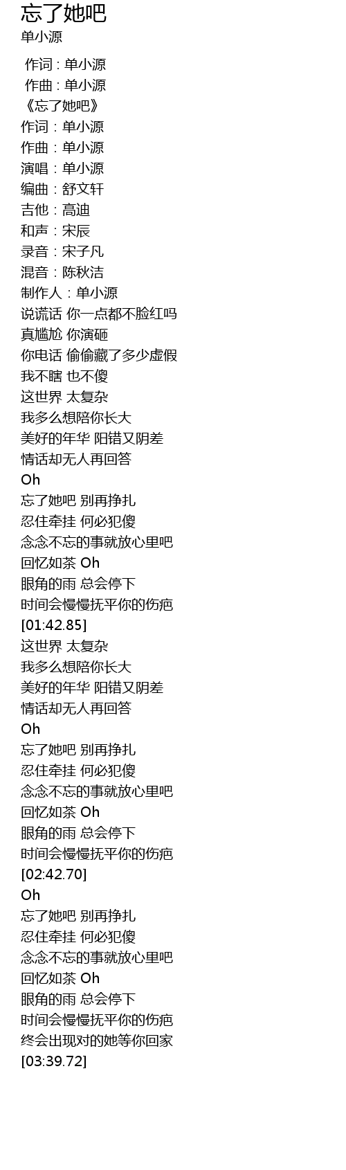| [00:01.000] | 作曲 : 单小源 |