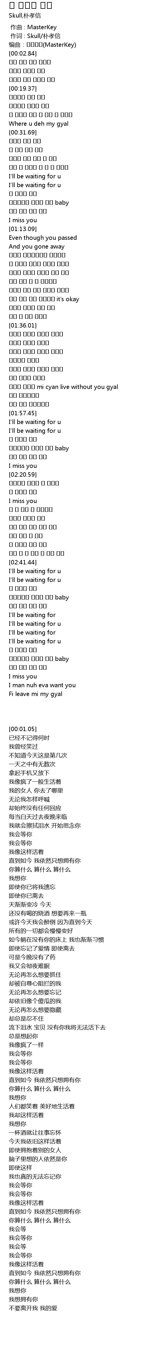 | [00:00.335] | 作词 : Skull/朴孝信 |