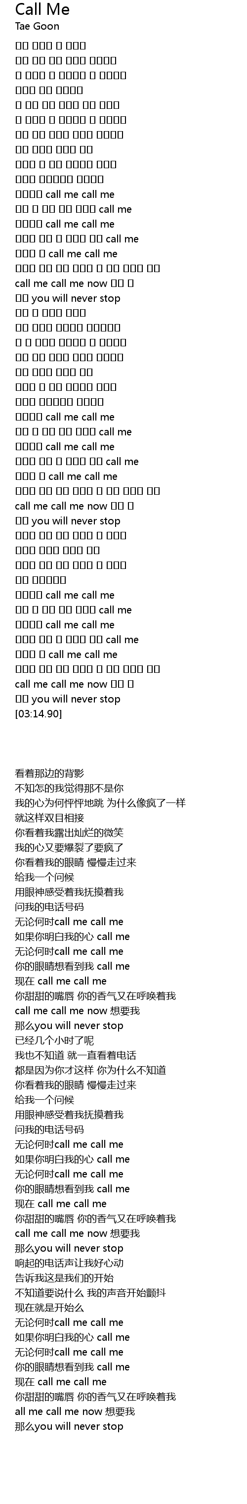 | [02:14.35] | call me call me |