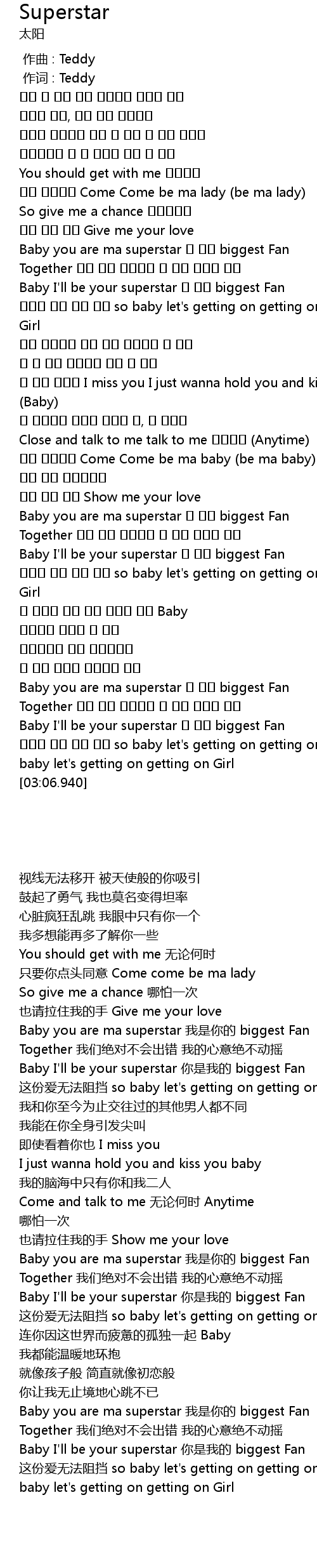 | [02:43.340] | Baby you are ma superstar 난 너의 biggest Fan |