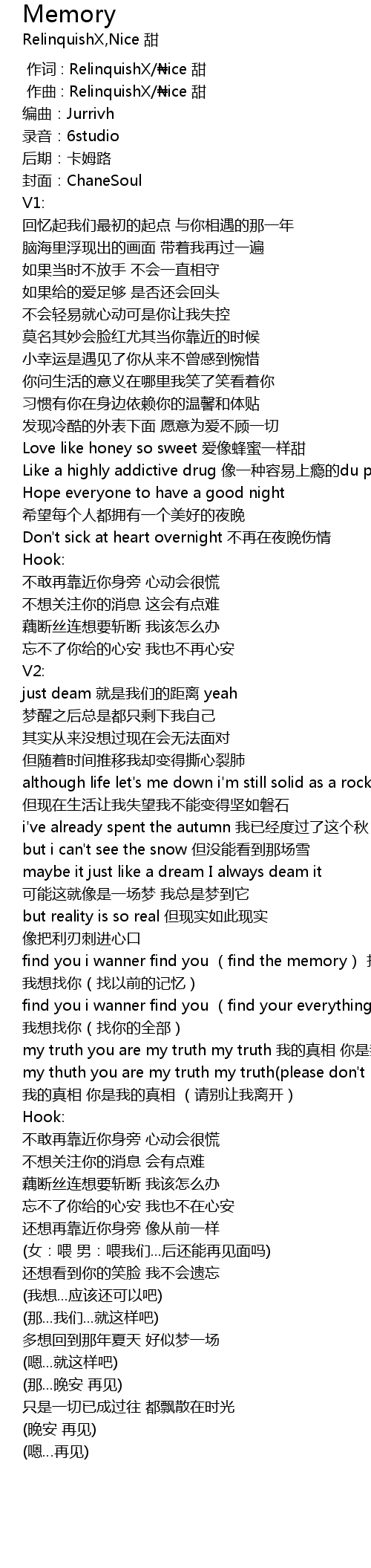| [00:00.000] | 作词 : RelinquishX/₦ice 甜 |