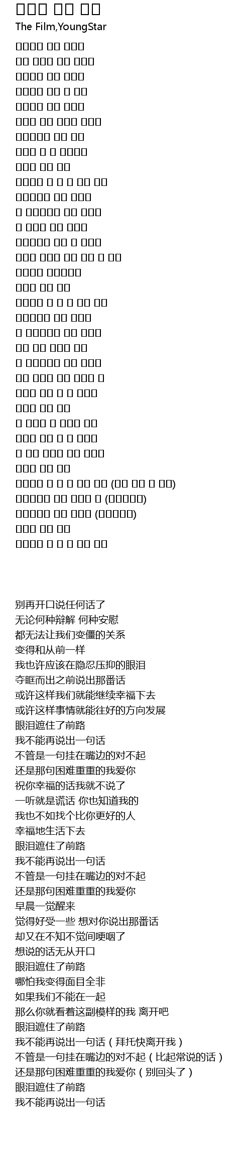 | [03:44.887] | 아무말도 난 더 할 수가 없어 (그래 없어 가 제발) |